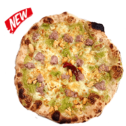Pomodoro San Marzano DOP, Mozzarella di Bufala Campana DOP, Prosciutto crudo “Antica Salumeria”, Salsiccia fresca “Jubatti”, Rucola, Scaglie di grana 18 mesi
